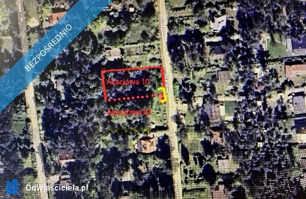 Adres pozostaje ul. Akacjowa 10, ale należy odgrodzić, połowa bramy stanowi granice działki (patrz na zdjęcia i czerwoną linie). Szerokość działki 20 metrów (patrząc z przodu). Długość 50 metrów.
